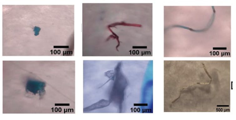 Otros plásticos como el polietileno o el cloruro de polivinilo aparecieron con frecuencia en las muestras junto con materiales de algodón o lana que han sufrido algún tipo de tratamiento para su uso textil (la presencia de colorantes y otros aditivos químicos también es motivo de contaminación).